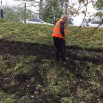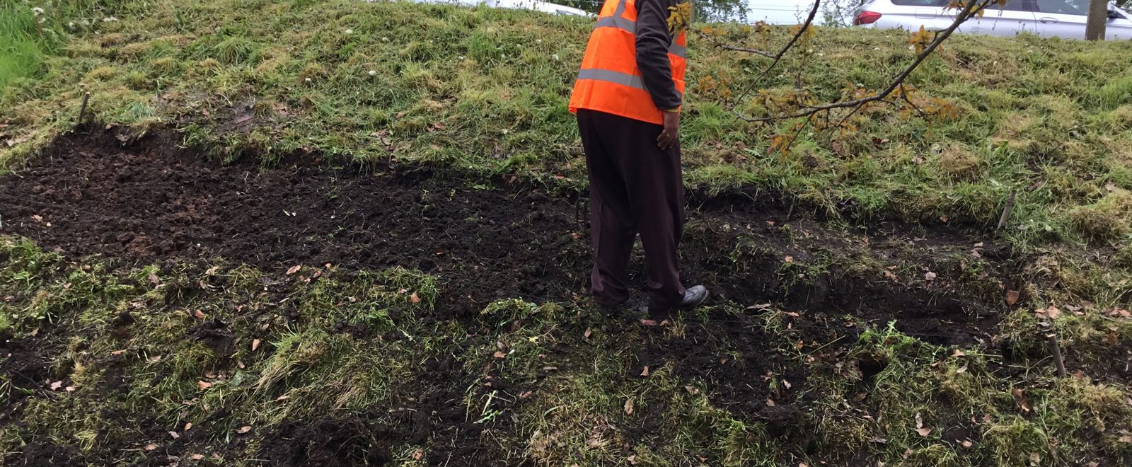 Jodie Johnson and her students from Greenbank School have been busy at Lostock Gralam Station clearing an area of grass to make an ornamental flower bed. They will spell out the word Lostock in flowers. Jodie `s parents have also come along to lend their support and horticultural skills to the project.