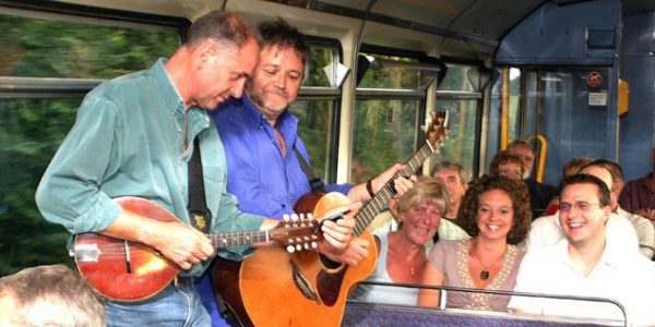 Hound Dog Blues are playing on the train. They feature: Jon Ingham – guitar, dobro, cigar box; Andy Millington – guitar, vocals; and Dave Eatock – harmonica, accordion, vocals. This highly accomplished trio formed the band a couple of years ago as an acoustic sideline to their busy programme of electric blues gigs around the UK. Playing well known and not so well-known covers from the 50s, 60s and 70s the Hound Dog Blues Band are sure to have your feet tapping, your face smiling and your heart and soul feeling good.