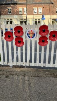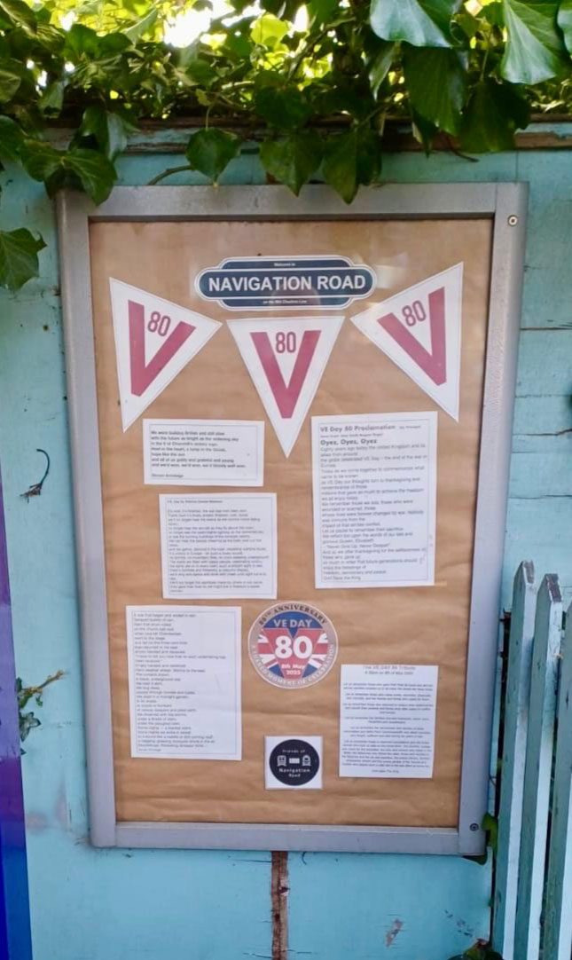 Many of the station adopters group celebrated the anniversary of VE Day (8th May 1945)by displaying themed bunting and creating commemorative displays. These include the pictured poppy display at Hale Station and the themed poetry board at Navigation Rd.