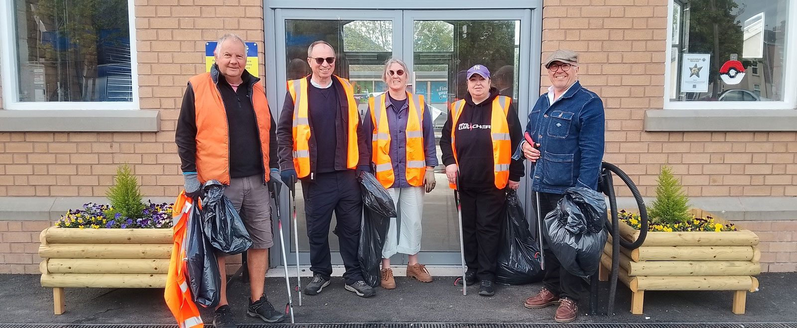 Friends of Northwich Station took time to pose for a picture next to their two new planters which are either side of the ticket office entrance and were made by Mid Cheshire Community Sheds. The Friends group have regular litter picking days at the station. The groups activites recently featured in an article in Our Town magazine, a local news pamphlet.