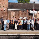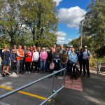 Yet more sunshine awaited us on this penultimate day of the baton relay walk. The baton became the responsibility of a new walk leader and the group set off from Northwich towards Greenbank after a short send-off from the local Mayor. We passed through parkland and along the canal, via woods and alongside a viaduct, along a lovely route towards Greenbank. Upon arrival we then set off towards Cuddington via Hartford, passing the train station there and availing ourselves of the hospitality and a short rest at the local village hall.