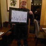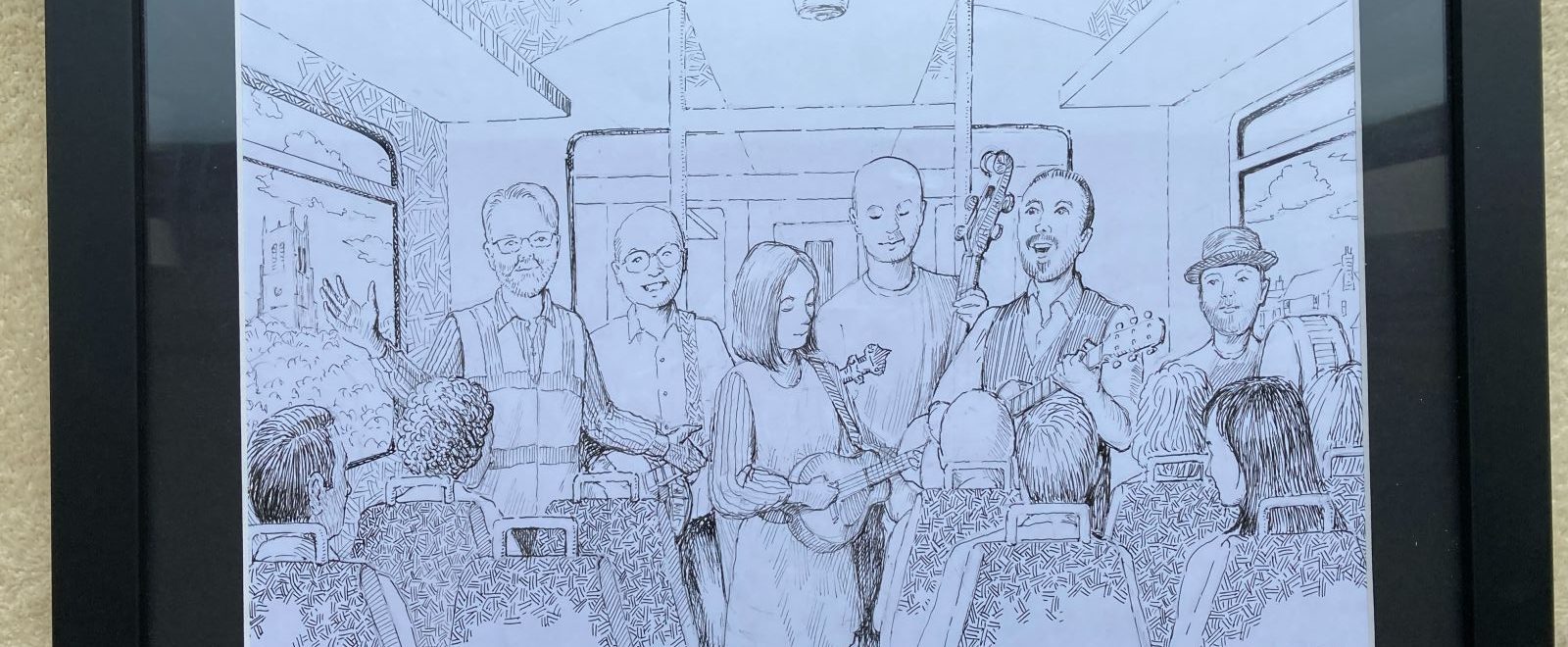 Mike was very pleased with his thank you gift which was a one off Music Train themed sketch by Northwich based artist Jim Stanley who has created some fantastic public artworks around the town in his signature monochrome style.