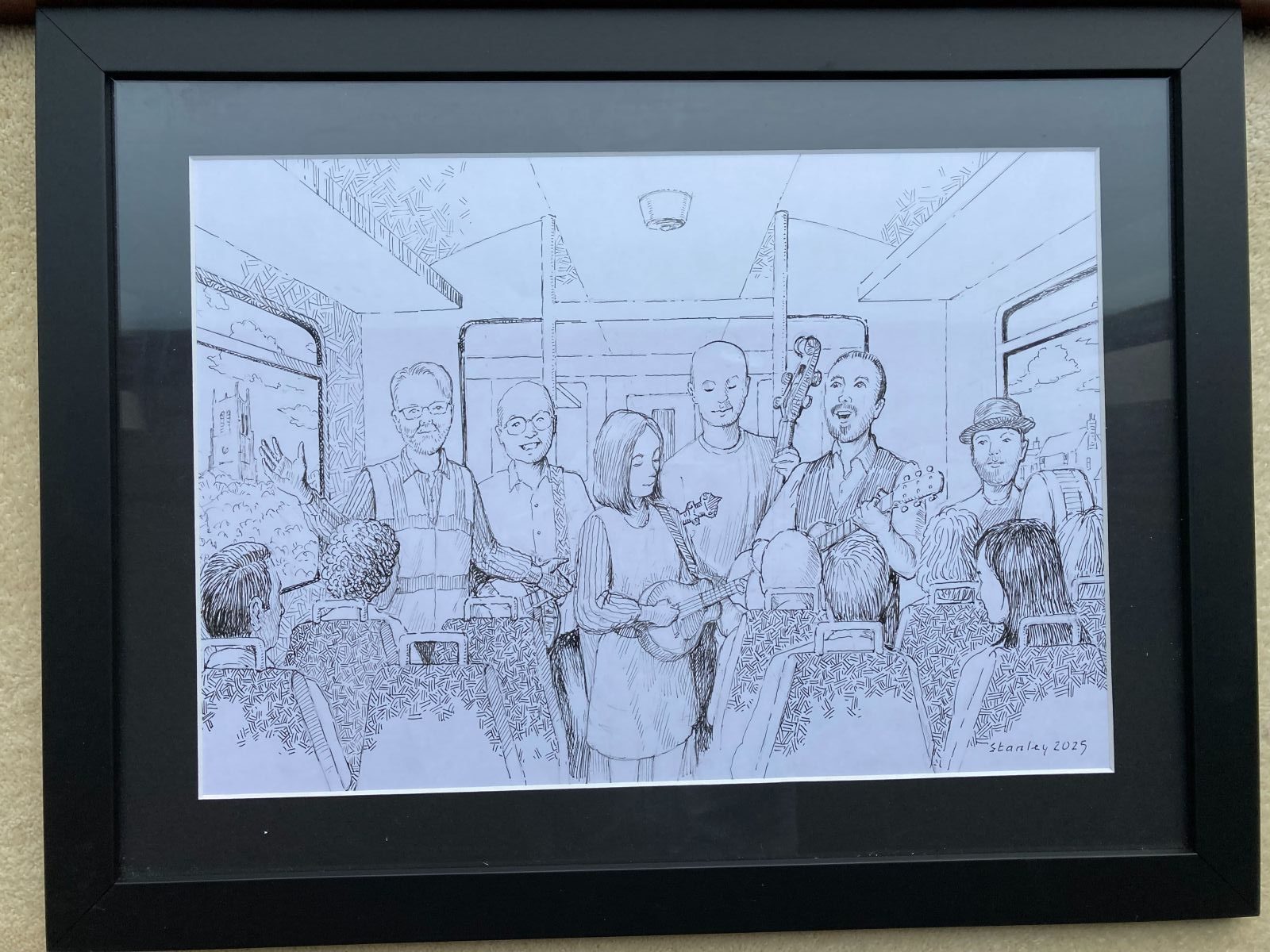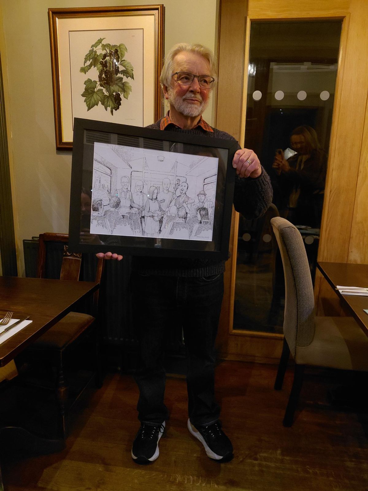 Mike was very pleased with his thank you gift which was a one off Music Train themed sketch by Northwich based artist Jim Stanley who has created some fantastic public artworks around the town in his signature monochrome style.